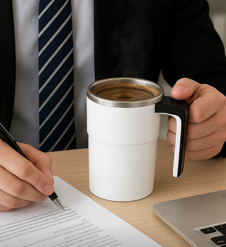 Enjoy perfectly mixed drinks anywhere with this self-stirring portable mug, designed for convenience and style on the go. With the press of a button, it effortlessly blends your coffee, protein shakes, or hot chocolate—no spoon required.